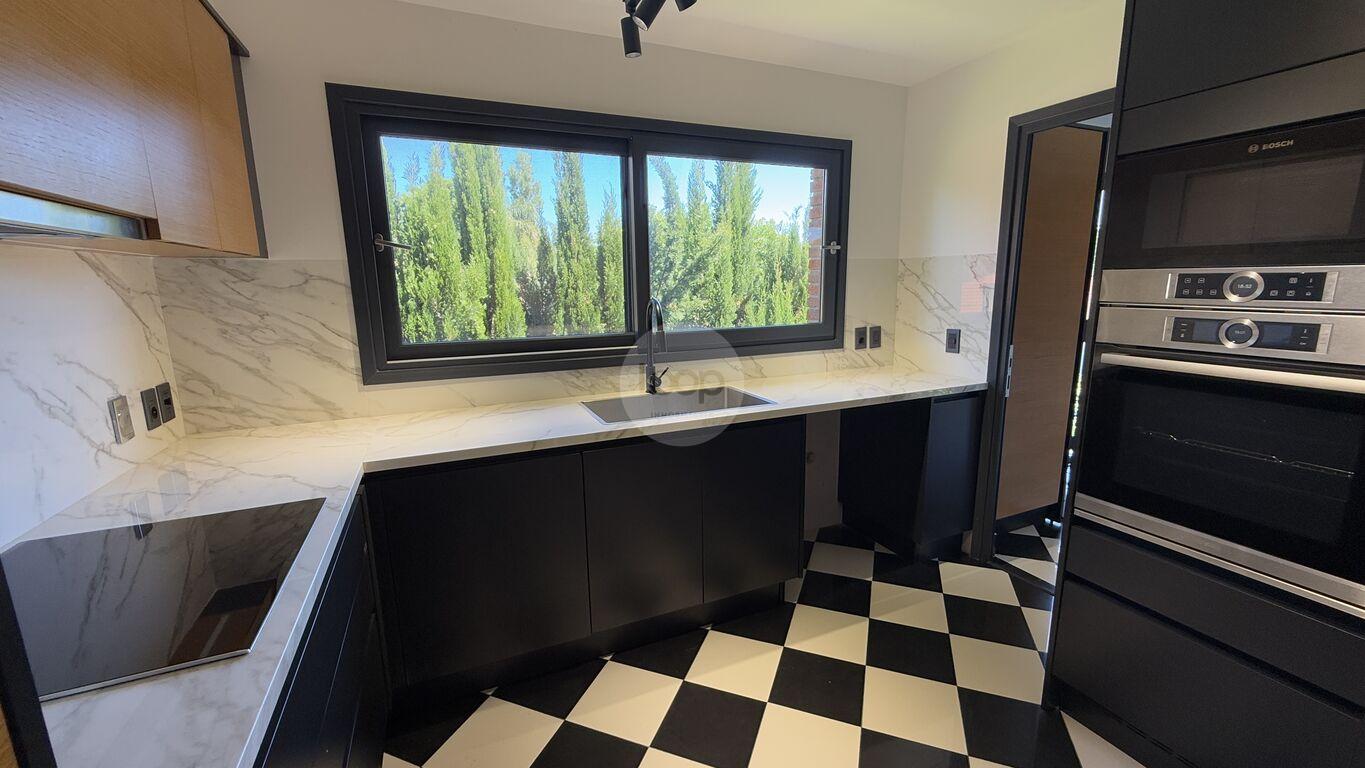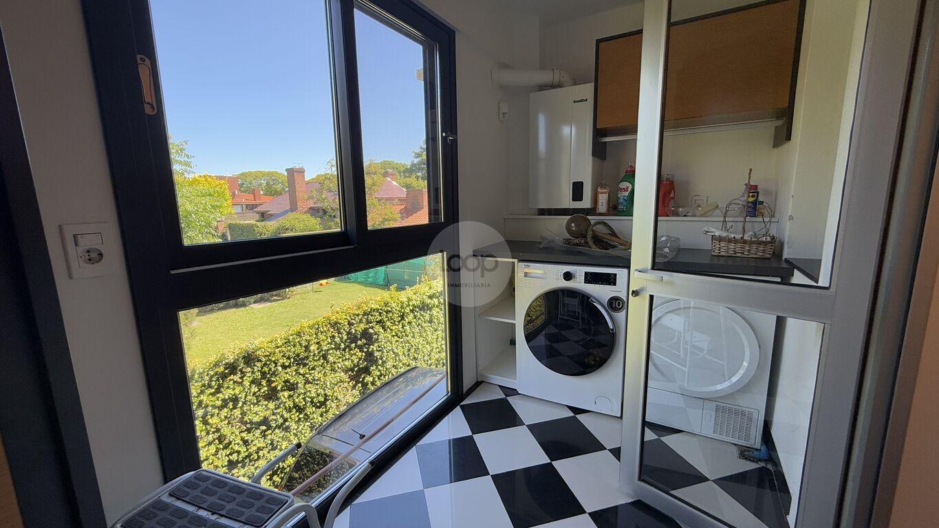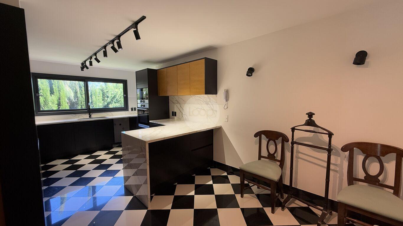 La cocina, moderna y funcional, está equipada con electrodomésticos de alta gama Bosch, y tiene acceso a un práctico lavadero. Además, conecta con el área de servicio, que incluye un dormitorio con baño propio, perfecto para el personal o para ser integrado a la zona principal si se prefiere.